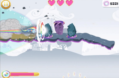 基于经典动画IP开发的横版跑酷游戏,剧情设定为小镇遭遇“偷色咒语”,色彩正在消失。玩家可操控紫悦、碧琪等六位主角,在草地、云朵、城堡等多变环境中奔跑、跳跃、滑行。每位角色拥有独立技能系统:紫悦使用魔法清除障碍物,彩虹黛西具备短距爆发冲刺能力。关卡中散布能量晶体用于技能升级,全程采用原版配音与标志性台词,兼顾粉丝情感联结与反应速度、手眼协调能力的同步锻炼。