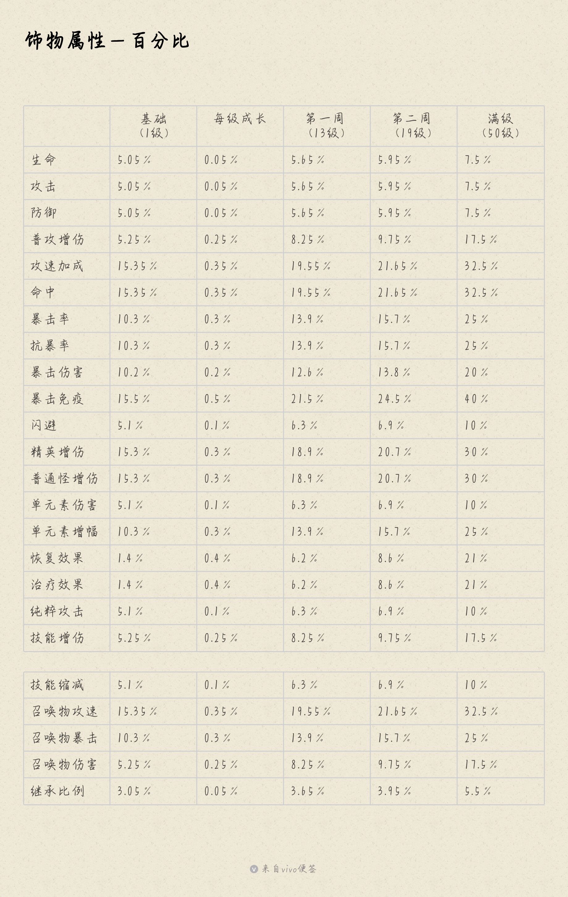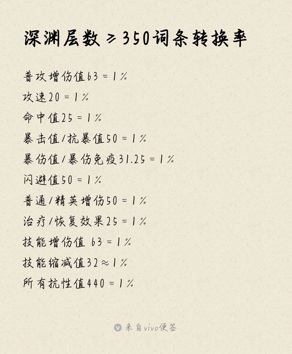 不过值得注意的是,有些属性虽然既有百分比又有数值,但两者并不一定对等,比如命中、恢复、治疗属性,下图为一些属性的转换率,小伙伴们可自行对比如何选择收益最高。