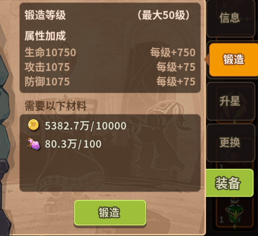 饰物属性可通过锻造等级提升,最高50级,每级提升属性相等,但消耗的材料越来越多,目前已知相关道具的白嫖获取方式只有一种,即每周参与魔物狂潮领取一次,按照这个获取速度,深渊层数≥407的零氪和微氪玩家如果只升级一件饰物,第一周可升至13级,第二周19级,之后会越来越慢,所以可以考虑平均升级。