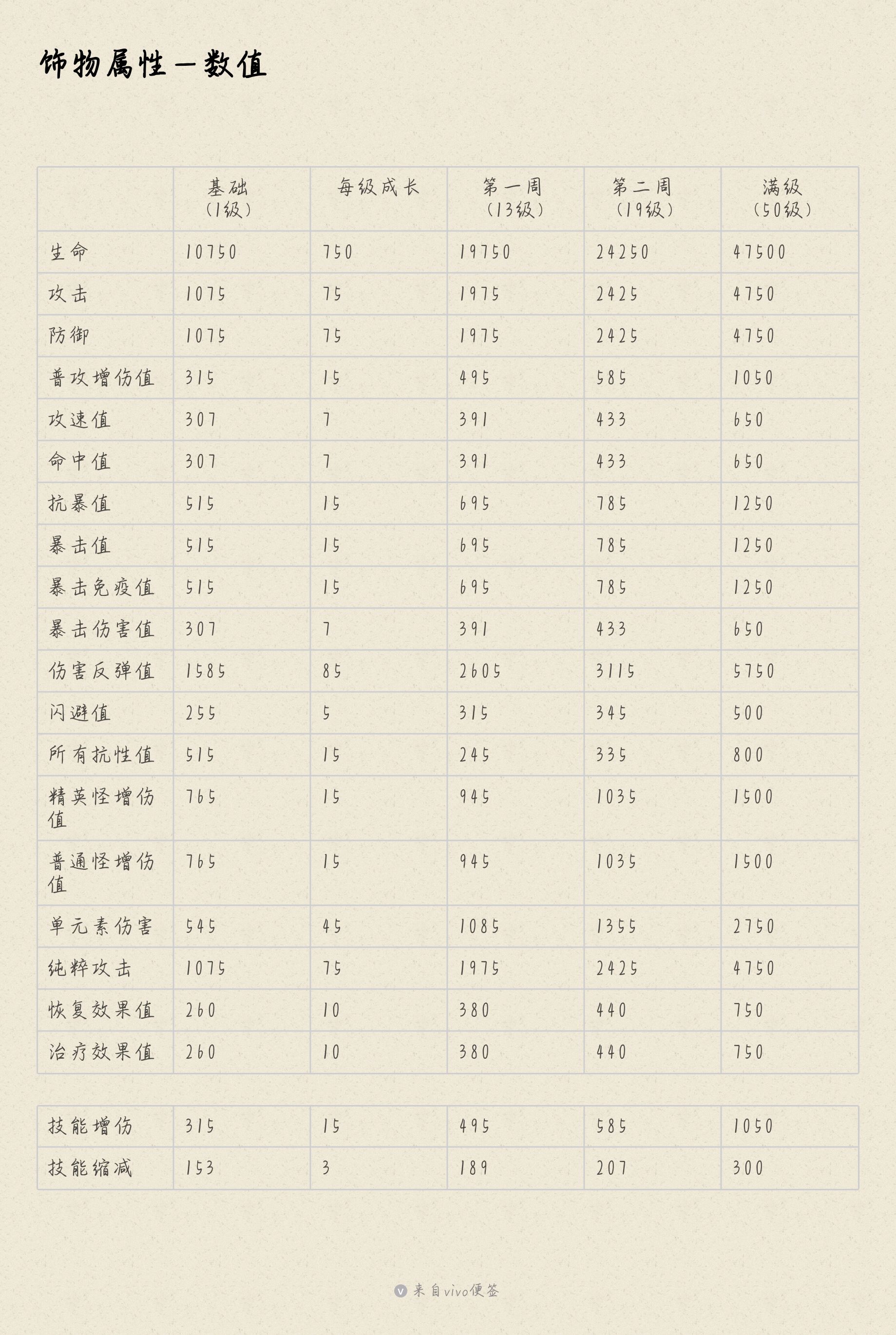 下面两张图包含饰物的所有属性及其相关数据。