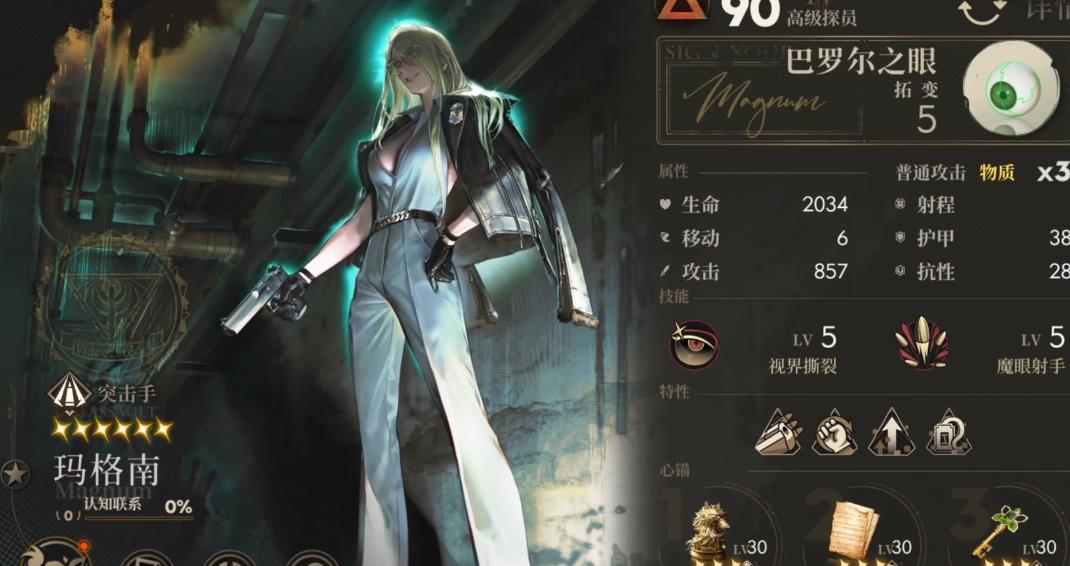 由于她紧贴着掩体的时候没有任何输出方面的加成,因此二拓触发起来是比较自由的,可以在第一次行动时贴靠或者在再行动时贴靠,不过在触发前尽量将一二技能全部都打出来,避免能量出现浪费。三拓会让其二技能获得十点初始能量,达到三十至四十点,算是优化了玛格南的速度与难度。