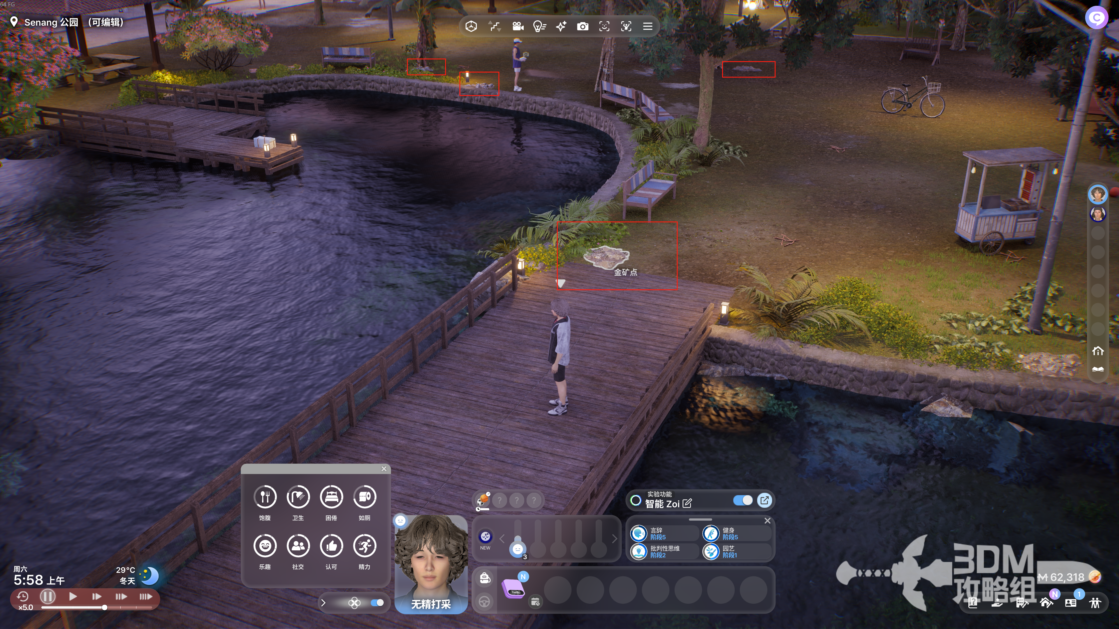 我们用【Senang公园】举例,这里的地上有很多矿点,不同的矿点种类不同。