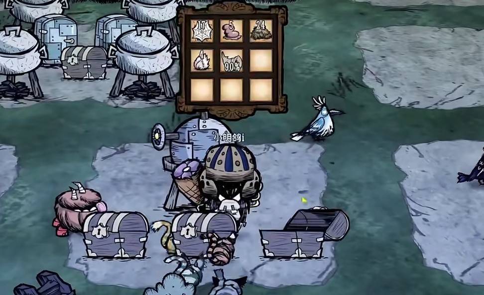 对于新手来说,如果没有太好的战斗技巧,制作保暖值没那么高的冬帽,也是有着一定保温效果,制作上只需要四个牛毛和四个蜘蛛丝,实际效果为牛角帽的一半。虽然效果欠佳,但也算是能用的保暖装备,实在太冷进入了负面效果,只需要烤烤火即可回温。有了这些物品,第一年冬季的寒冷也就可以安全度过了。