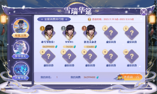 参与方式:点击“雪瑞华筳”-“琼筳宝阁”进入榜单