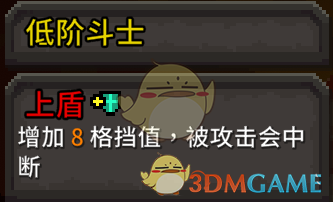 《斗技场的阿利娜》中不同的小怪伤害技能也不同,低阶斗士可以将自己的盾牌击破让敌人停止当前的行动,持续时间为一个回合,而且低阶斗士的伤害比较高,血量也比较厚,可以抗伤。