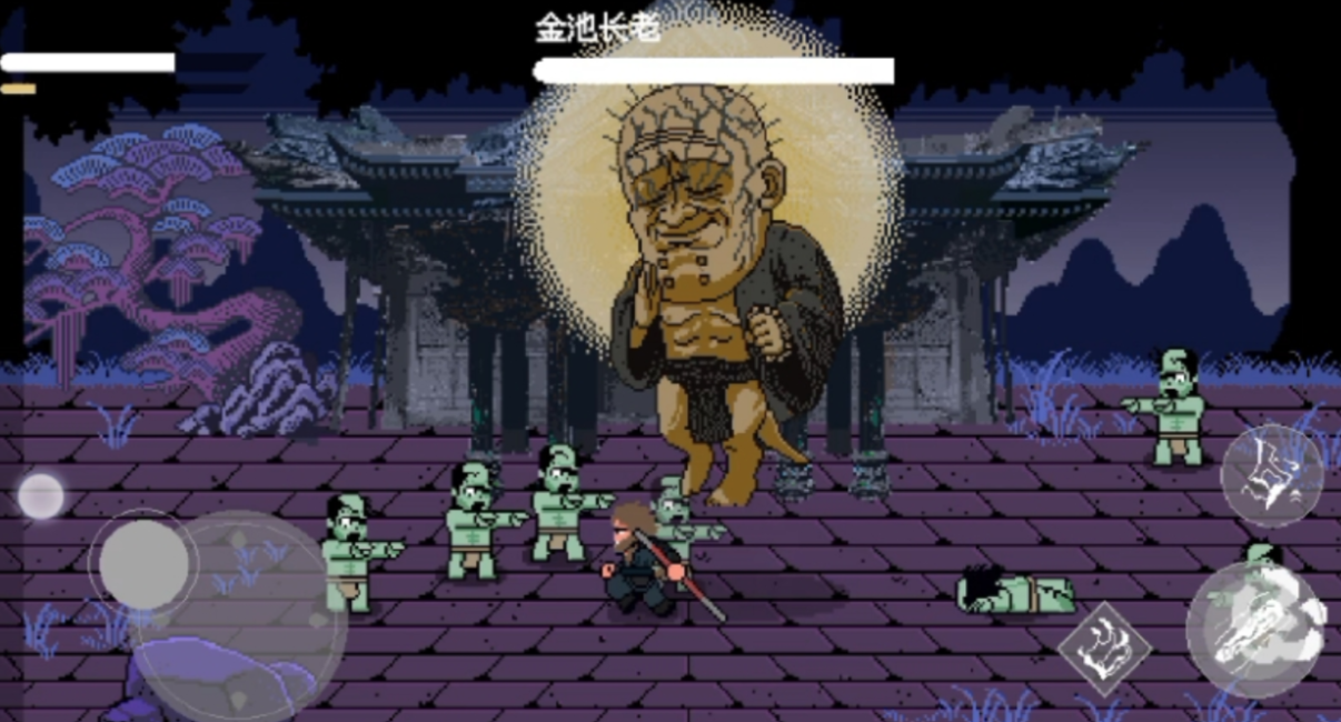 该作以《西游记》神话体系为蓝本构建暗黑风格像素世界,主角为具备七十二变能力的灵猴战士。战斗系统强调连招节奏与技能资源管理,定身术冻结敌人、分身术制造战术牵制、筋斗云实现地形跨越。BOSS战设计融合传统妖魔特征与机制解谜要素,仙丹系统提供差异化恢复策略。所有文本采用古风白话混合表达,关键道具说明与对话选项均经文化语境校准。