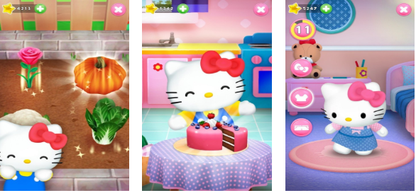 本作聚焦语音交互与拟真陪伴体验,支持实时语音识别与情绪反馈。凯蒂猫会根据玩家语调、语速及关键词做出相应反应,如开心跳跃、害羞捂脸或好奇歪头。除基础互动外,还整合烹饪系统(需种植获取食材)、服装搭配、房间布置等模块,构建完整生活闭环。所有语音素材均由专业声优录制,符合三丽鸥官方角色设定规范。