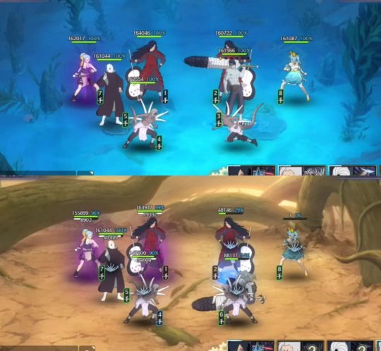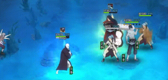 (6)我爱罗[忍界大战]可造成沙牢,使对方无法行动,结界可以让全场忍者每回合只普攻一次,可使我方忍联合军获得护盾并成长体忍;(7)干柿鬼鲛[狂野鲛鲨]受到忍术伤害会回复查克拉,当对方查克拉较高时会造成更高伤害,累积刀技可展开结界,增加我方忍者体忍;