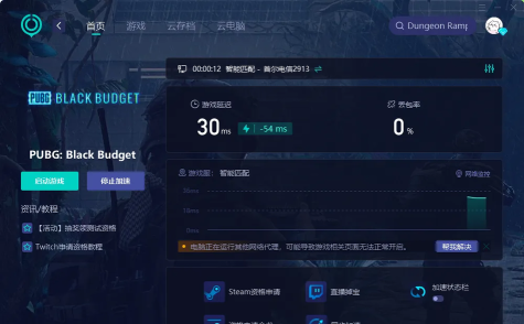 网络链路质量直接影响《PUBG:黑域撤离》的会话稳定性。在高强度交火或撤离倒计时阶段,若出现TCP重传率升高、UDP数据包丢失率超5%、端到端延迟波动幅度大于80ms等情况,将直接触发客户端强制断连或进程终止。普通家庭宽带难以满足该类实时对抗游戏的QoS需求,必须借助专业级游戏网络优化工具。biubiu加速器采用帕拉斯引擎3.0智能路由选择技术,结合专属游戏专线通道与深度数据包优化算法,可将平均延迟降低40%以上,丢包率压制在0.3%以内,显著改善卡顿与掉线现象。
