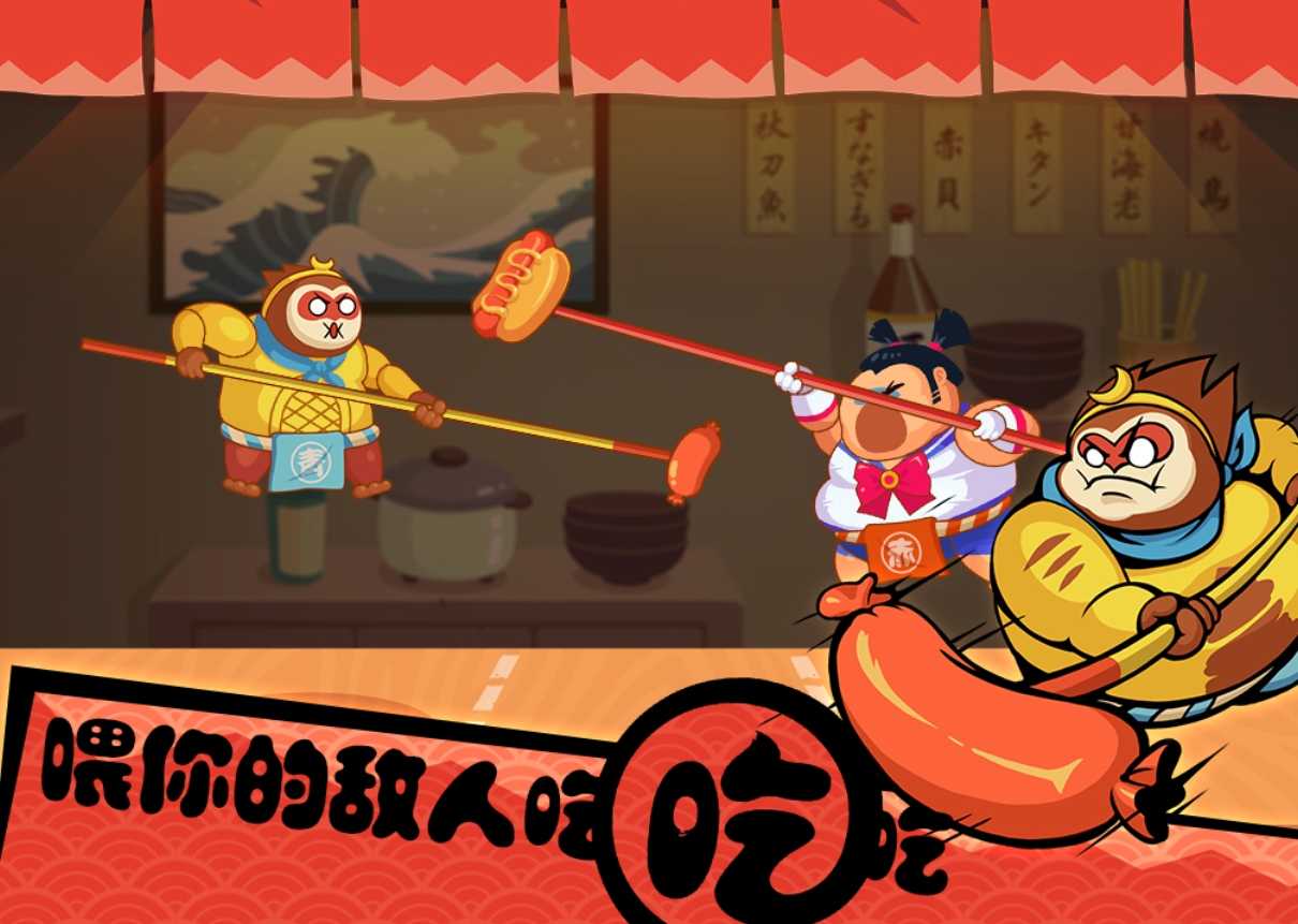 一款以“增重压制”为核心机制的趣味对战作品。双方通过投喂各类食物道具,迫使对方体型持续膨胀,当体重达到临界阈值后,角色行动迟缓、闪避失效,从而判定胜负。支持双人同屏及多人组队模式,角色图鉴丰富,获取门槛低,部分形象直接完成新手任务即可解锁。对战所得金币可在内置商店兑换干扰类道具,如滑倒香蕉、减速酱料等,强化战术博弈维度。