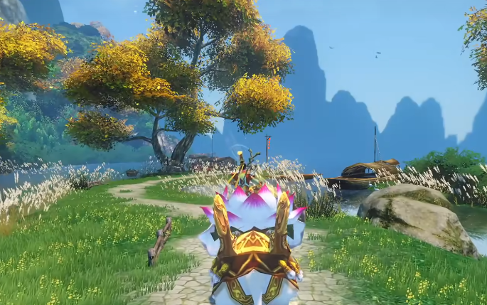 游戏构建了一个超大规模立体开放世界,场景尺度达百平方米级,涵盖八卦田、白水台等标志性东方地景,并深度融合中国山川地貌元素。依托自研弥赛亚引擎,实现实时动态光影、植被物理反馈(如角色移动引发草木微幅摇曳)、昼夜循环系统及高精度古风建模,营造沉浸式山海经风格大世界氛围。