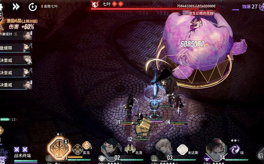 同调属性的存在会让玄戈可以与物理以外的元素搭配,反应队格子较为稀缺,与不反应的蚀和风就能互动。蚀元素游徒鸢能吃到大部分的增益,明月尘会提供目标易伤,珑保障生存与充能,依旧能带上北洛给融甲与屏障。还可以将其更换为晴雪与红玉,连击后会提升队友的同调者暴击,搭配晴雪融甲会加攻大招充能。