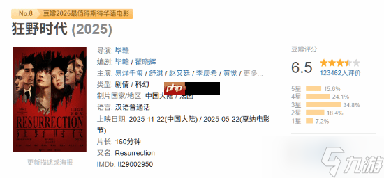 据悉,由毕赣执导、易烊千玺领衔主演的《狂野时代》,当前豆瓣评分为6.5分。部分观众评价称:“整部影片更像导演的私人情绪独白,未顾及大众接受度”“刻意营造晦涩氛围”;亦有观众力赞其艺术表现力,认为该片影像语言极具诗意,画面质感出众。