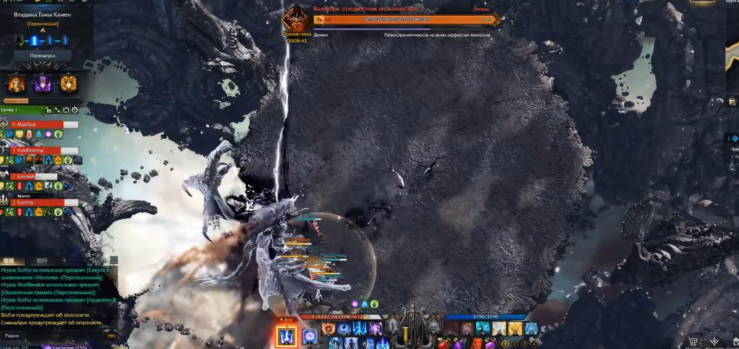 在终点位置处会现身对路径上的玩家进行击飞,但此时如果出现了蓝光就可进行反制,以免打到后面跑得慢的玩家。终点的boss也能出现红光的假动作,此时就不要反制,如果发现最前面的玩家反制错了或者失败,就要立即位移躲避黄色长条激光。每隔段时间军团长都会仰头吼叫,召唤出龙卷风开始攻击玩家,接着依次锁定四名队友脚下出现黑水,需要来到地图六点或者十二点来贴墙排水。