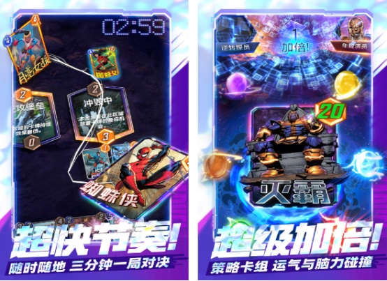 本作由漫威官方授权,斩获TGA年度最佳移动游戏奖项。其核心玩法融合快节奏回合制对战与深度卡组构筑,每局使用12张卡牌进行三区域布阵,强调地形控制、角色联动与流派克制。游戏收录钢铁侠、蜘蛛侠、雷神等数十位经典英雄与反派,并提供大量变体卡面及技能机制,策略维度丰富,操作门槛友好,是海外策略卡牌类手游中的标杆产品。