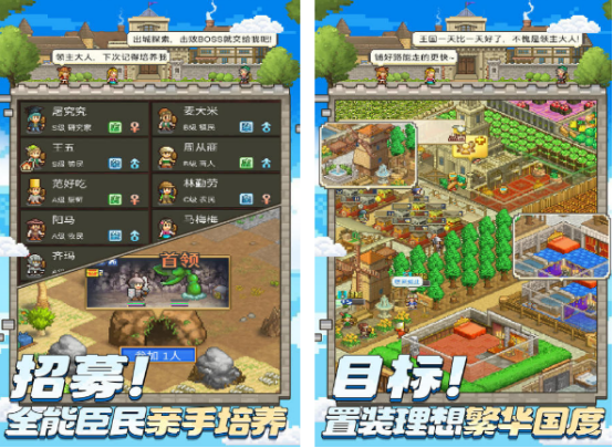 出自日本知名独立工作室开罗游戏,主打像素风格沙盒式王国建设。玩家扮演君主,在有限地图内规划住宅、商业、军事与科研设施,平衡人口增长、资源产出与治安发展。系统支持自由布局、NPC职业培养、随机事件触发及迷雾探索机制,兼具模拟经营深度与轻松休闲体验,长期稳居海外模拟类手游畅销榜前列。