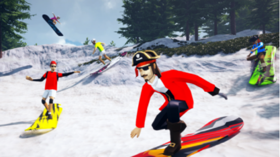 本作为经典IP的正统续作,采用全3D建模打造动态滑雪世界。玩家将操控Q版角色穿越冰川、雪谷、火山口等多样地形,在高速滑行中完成跳跃、翻转、侧滑等高难度动作。支持2至4人本地或在线联机对战,强调反应力与路线预判能力。每局比赛需持续领跑并规避障碍,才能赢得最终胜利。