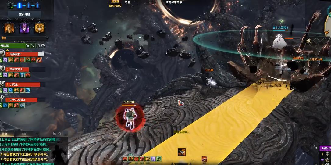 在boss有一百五十四管血时会破坏一侧地形,后续战斗被它的黄色技能命中便能造成地形杀。当剩余一百三十五管血左右就会出现动画,并破坏掉另外一侧的地形,建议玩家在地图中心集合。接着点名几个人脚底下出现落雷,看到脚下出现白圈时就要位移躲避,并在地图下方集合。随后boss就会连续朝着玩家射出七个电球,玩家需要按照队伍顺序依次对其进行反制。
