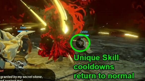 塞尔达和劳鲁在这场战斗中失去了"神圣力量之源"的增益,因此你将无法再滥用他们的独特技能。