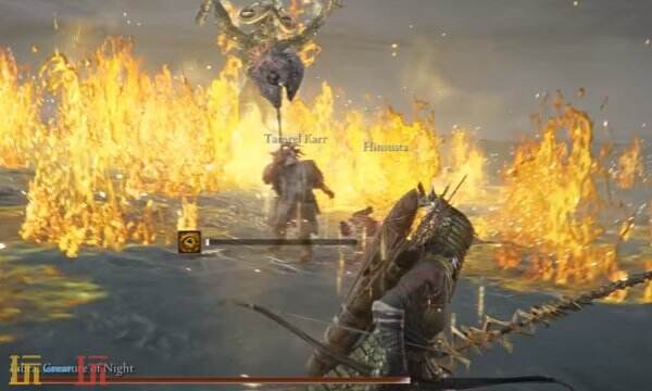 执行者爆发输出,连招循环火焰突刺→神圣斩→后撤步,佩戴护符火蝎符+圣树恩惠。