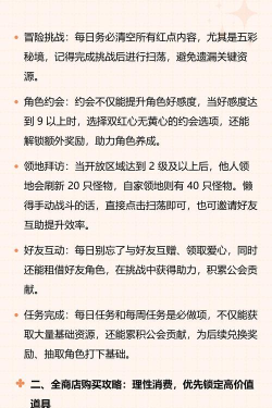 购买顺序 1. 资源(水晶优先)→2. 打工建筑→3. 解锁休息格子(领地币兑换,无需石头,月卡额外多3格)→4. 攻击房子 领地20级后,每日买扭蛋+花,后续按自身规划选购