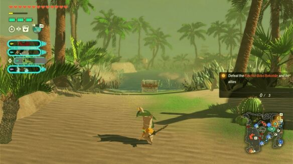 沙海惊魂” 关卡:先占领南部营地并获取 炸弹” 左纳乌装置,破坏骷髅头骨构造开宝箱收集资源,清理沿途敌人获取可提供增益的素材;再利用盟友指令分头占领东南、东北据点,之后击败沙漠中央出现的首领莫尔德拉吉克(战斗时可趁其沙中冲锋用对空技能暴露弱点条)。该区域可收集 4 个克洛格种子(分布在南部营地东门、东南据点南门等位置,需击破气球、互动风车等获取)和 7 个宝箱。