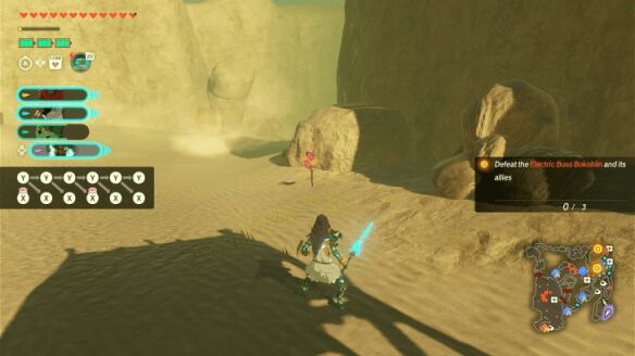 在沙漠区域探索时,你会遇到一个骷髅形状的岩石构造。使用你刚获得的炸弹,或者其他具有爆破功能的左纳乌装置如火箭、大炮,将其破坏。