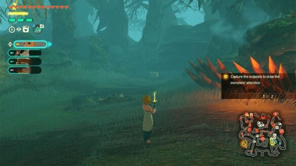 浓雾之中” 任务先分兵占东西据点,找隐藏通道占中央据点,再北上占西北、东北据点,拦截击败雷电和火焰蝙蝠后开启首领战;对战格鲁姆基拉可利用火、对空、破盾弱点(血量 70% 以下仅保留火和破盾弱点),区域内还可收集 7 个克洛格种子和 7 个含左纳尼乌姆钢等物资的宝箱。