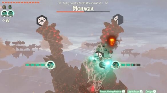 装备火箭(群攻)和炸弹(单攻高血目标)两种左纳乌装置,空战清理死亡之山路径敌人;在火山口对战摩拉吉亚时,预留装置能量,待其制造巨型岩球时全力攻击触发弱点粉碎,削弱其三头后集中火力摧毁;此外飞行路线穿三组黄圆环可获1个克洛格种子。
