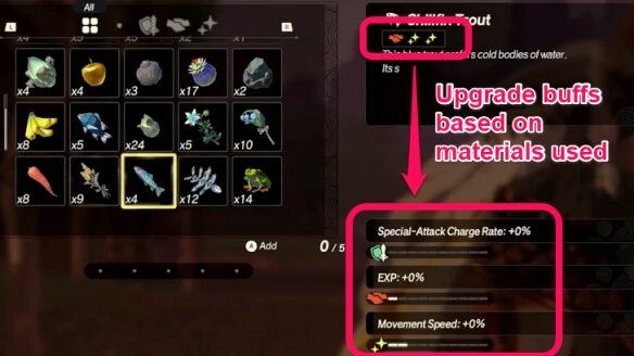 营地升级:击败肖兰尼后,你可以在该据点建立营地,以补充干粮、生命值和左纳乌能量电池。你还可以通过提交特定的材料来升级从营地获得的增益效果,记得查看不同材料能强化的参数。