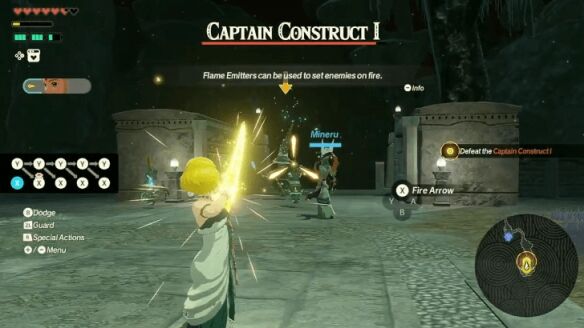 米涅鲁现在可操作了!你可以在接下来与两个队长魔像 II的战斗中熟悉她的招式。她的攻击更适合与强大敌人进行一对一战斗,建议先使用劳鲁清理掉那群小型西诺克斯。