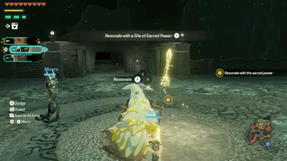 移动到下一个房间,击败队长魔像 III。战斗后,接近 平台中心并与之共鸣,以打开前方的道路。