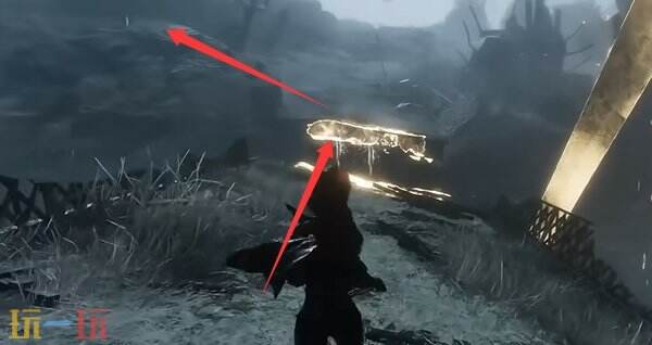 过来后往左边走,沿途没路的时候要利用钩索。到下图所示位置后,过去,往左边拐一下。