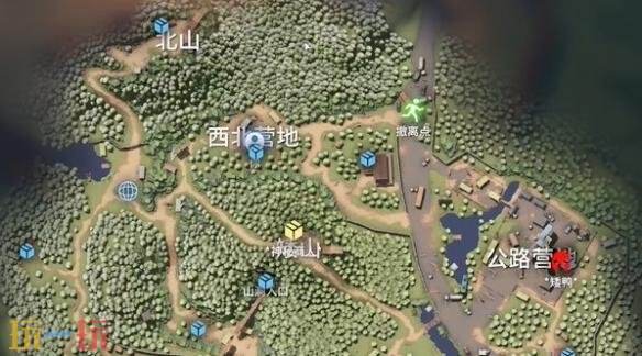 找到图中西北营地位置,往下面移动,来到最下面,就可以看到箱子了。