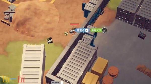 玩家前往临时工地左侧下图所示区域,过来后靠近藏匿点,直接使用道具铲子即可。