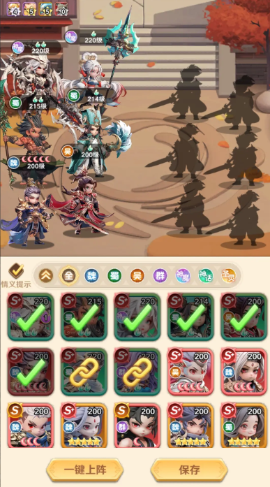 司马懿能在给敌方带来减益的同时,让我方获得伤害减免效果,赵云能让队友增加伤害并获得新回合机会,貂蝉可以让队友加攻击、暴击率、防御,还能帮助控制为孙悟空提供良好输出环境,杨戬和孙悟空自带的合击,能进一步强化双方的能力。