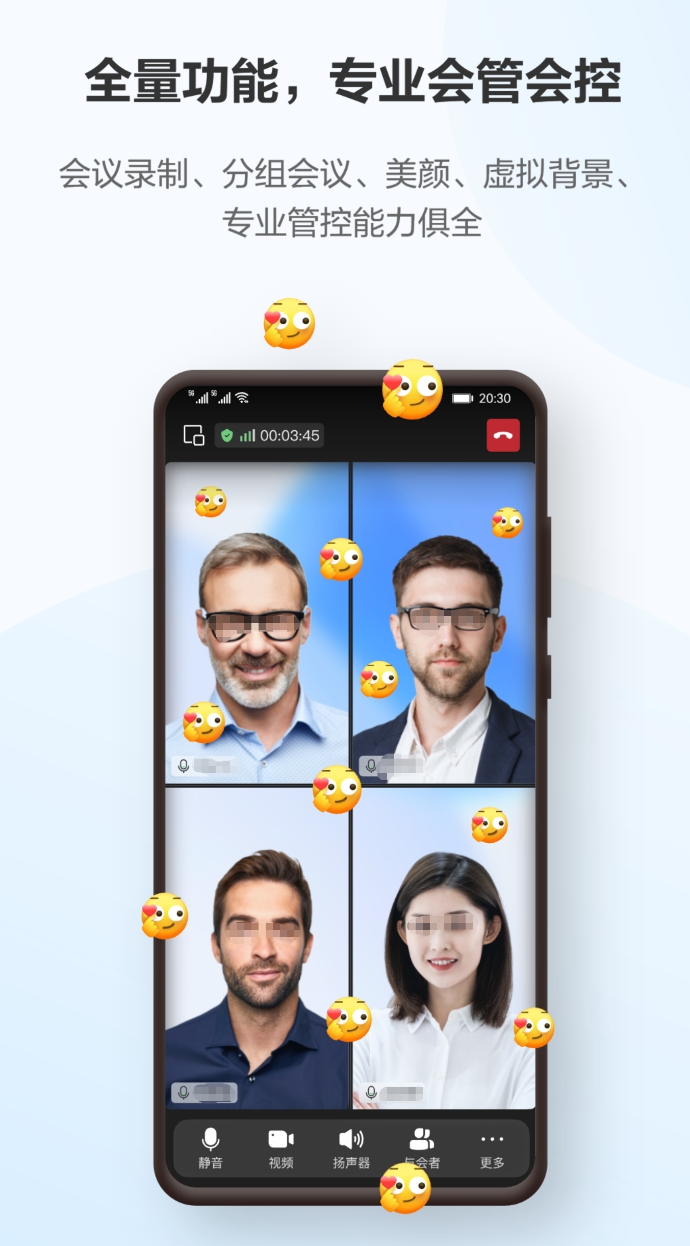 本产品兼顾了大规模互动和深度协作,不仅支持千人同时入会,其特色的网络研讨会模式,能融合会议与直播,为了帮你更好地完成会议任务,官方还设计了多个辅助工具,比如AI降噪功能,开启它之后,会议声音会变清楚,用户发言时也不会被周围环境干扰。
