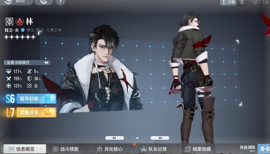 林是稀有度为六星的炎元素方块职业轻卫,可以创造出火地板并嘲讽目标。拥有攻击与防御等两种姿态,前者则可造成范围伤害,后者可为队伍提供易伤与减抗加成。普攻分为两种,两秒一次的攻速较低,攻击距离为两百五,毕竟武器为拳刃。在防御姿态下普攻为单体伤害,可使目标受到百分之三十易伤,不过只持续五秒,因此在面对比较好动的boss时易伤效果难以保持,需要多走位来调整林与其之间的距离。