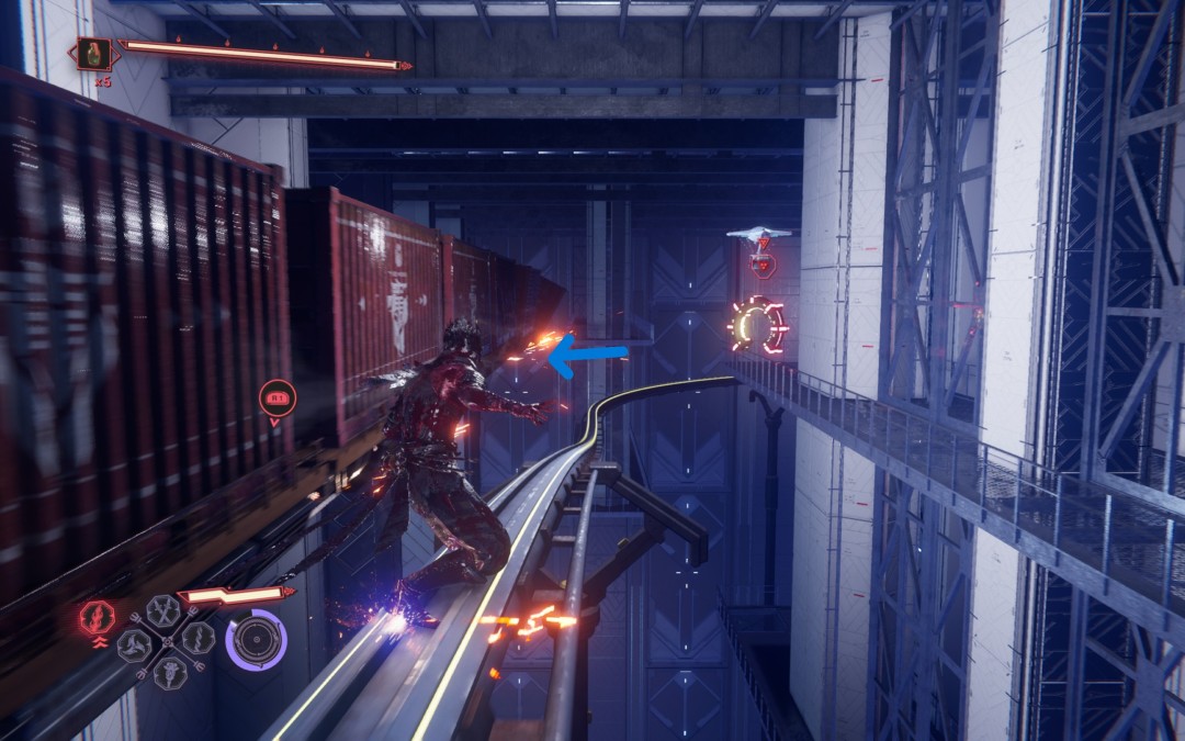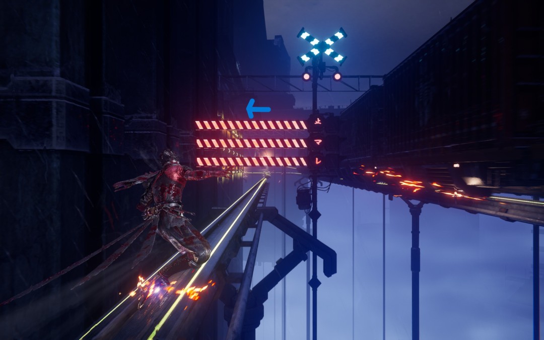 继续前进,在左边列车经过后跳上左边的轨道,到底有【炼狱】