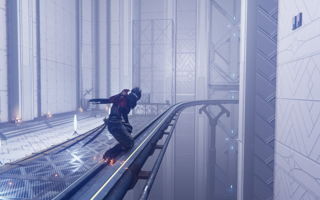 经过第二个终端后,划轨道途中,一直朝最左边的轨道跳(下图蹬墙跑后还要向左),会到达隐藏通路完成忍务【灭杀一众龙神党守备兵】,交付得到饰品【地狱蛭之牙】