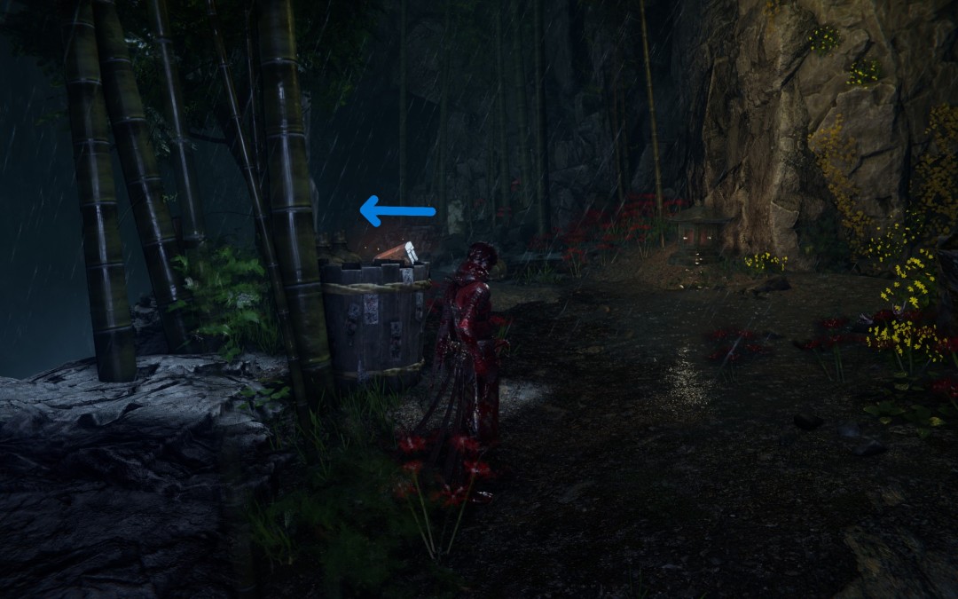 刚才罐子怪的位置,被砸下去继续乘风落地后,左手岔路尽头是忍务【灭杀一众食人妖魔】