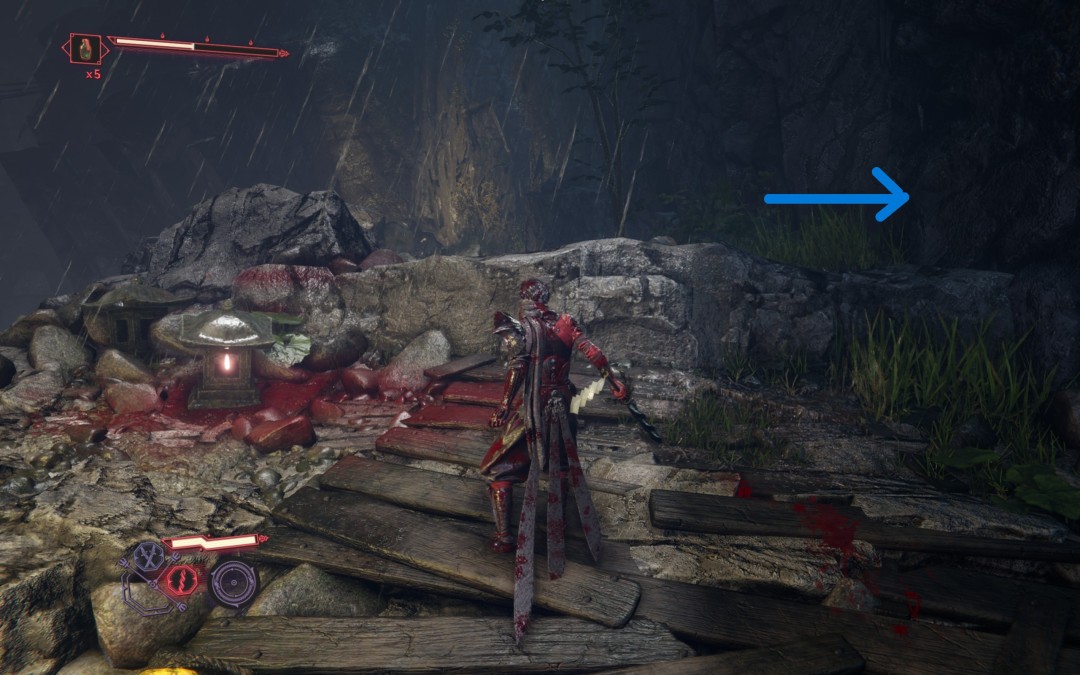 跳过悬崖击败两只乌鸦怪后,跳竖井前,右后方岔路尽头有【炼狱】