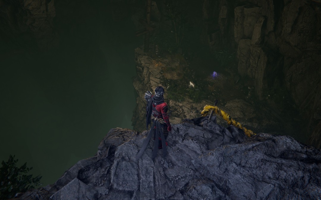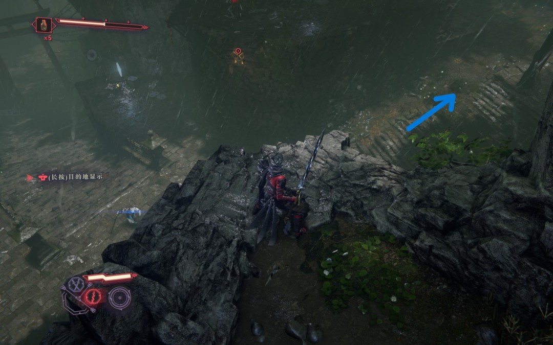 沿主线来到悬崖,跳下去右手边雕像前拿到【纯黑鳞】