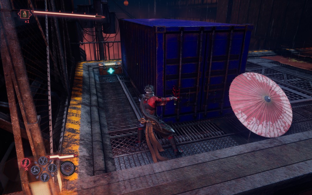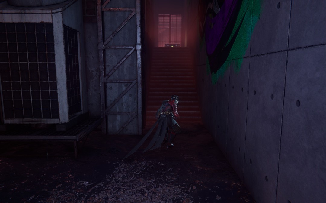 上楼梯后,右侧蓝色集装箱后开宝箱有【腐烂的护身符】,完成忍务【在东京摩天楼获取腐烂的护身符】,交付得到【纯黑鳞】