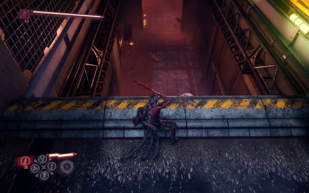 《忍者龙剑传4》游玩第三章不夜城的时候,有很多装备可以收集,上竖井来到章节第二个终端,先不要往前走,背后到尽头有炼狱,打完第一个boss后,先不上左侧楼梯,右侧开门完成任务灭杀食物小偷。