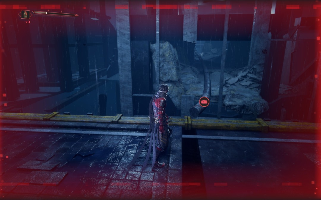 《忍者龙剑传4》游玩第二章幻影之暴都的时候,有很多装备可以收集,经过一处左右平台的战点后,左手边岔路有管道可以滑,到底有炼狱,继续往前,先不要跳上轨道,左边宝箱有纯黑鳞。