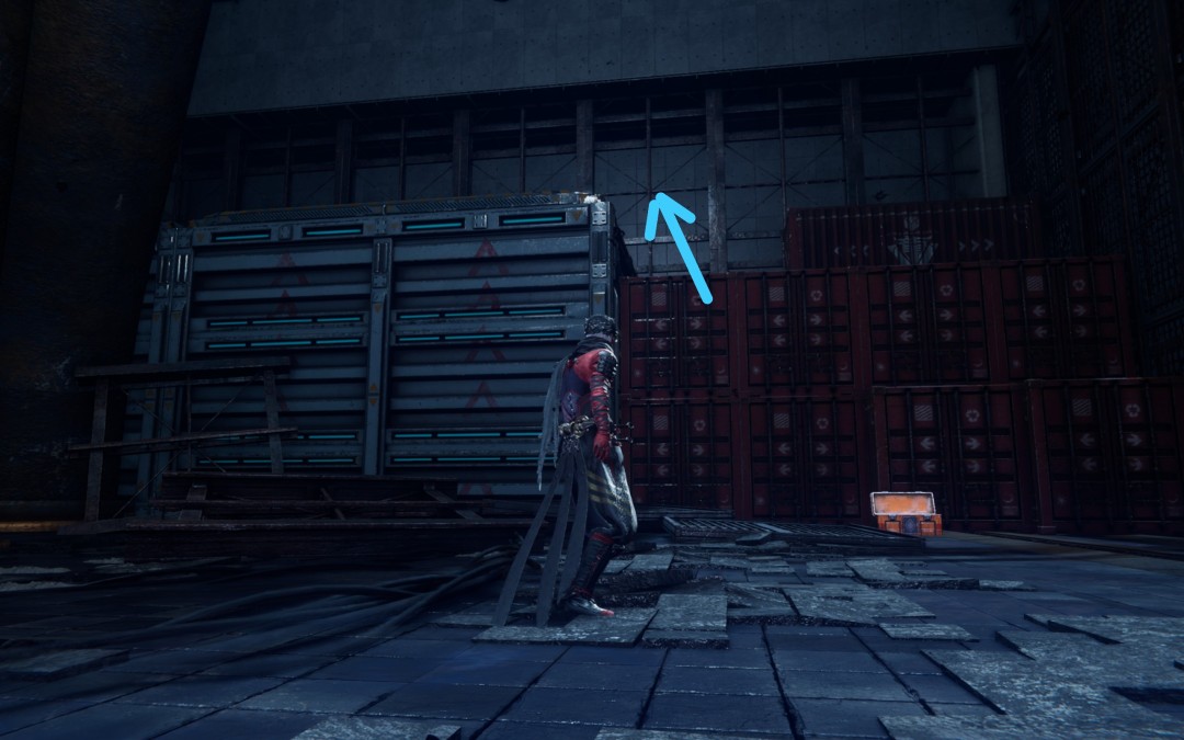 滑过轨道后附近有宝箱和集装箱,爬上集装箱,有一只【瓜瓢箪】