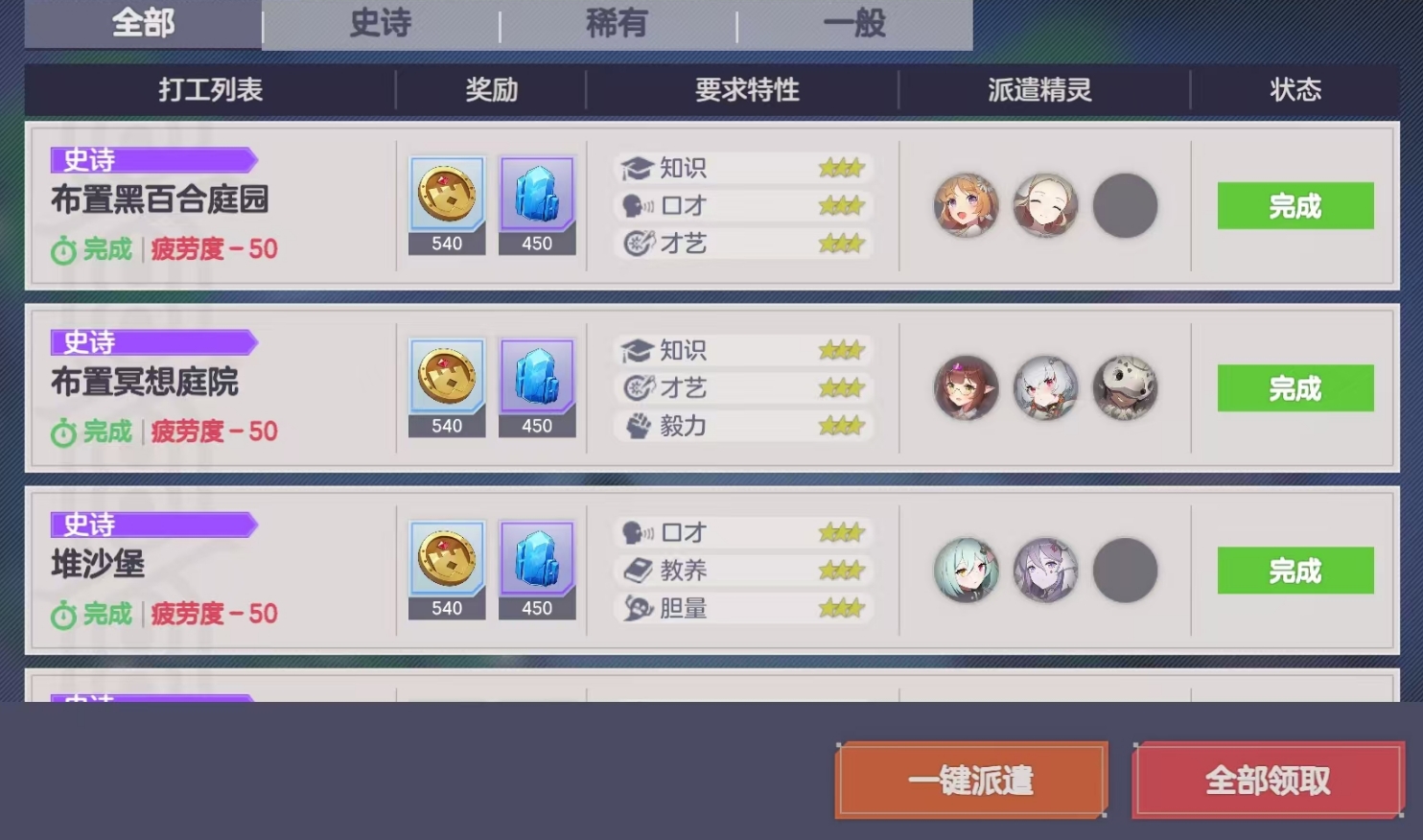 当前领地体系围绕三大支柱展开:第一项为“猎场清剿”,每日限接一次任务,需清除指定数量的敌对单位与环境障碍物,达标即结算奖励;第二项为“建筑规划”,支持在领主城堡及私有地块部署各类功能性建筑,每栋建筑占用格数不同,建造自由度高,空地不足时可通过消耗领地硬币或钻石进行区域拓展,部分建筑具备增益属性,可提升精灵属性或缩短任务耗时;第三项为“精灵委派”,进入打工界面后可指派精灵执行不同类别委托,任务按稀有度划分为史诗、稀有、一般三级,其中史诗级回报最优,且所有任务单次消耗疲劳值恒定,因此建议优先选择史诗任务及含扭蛋球等限定道具的稀有任务,规避低收益的一般任务。精灵疲劳满值后需移入休息栏恢复,满值自动退出,已满疲劳者不可重复放入。
