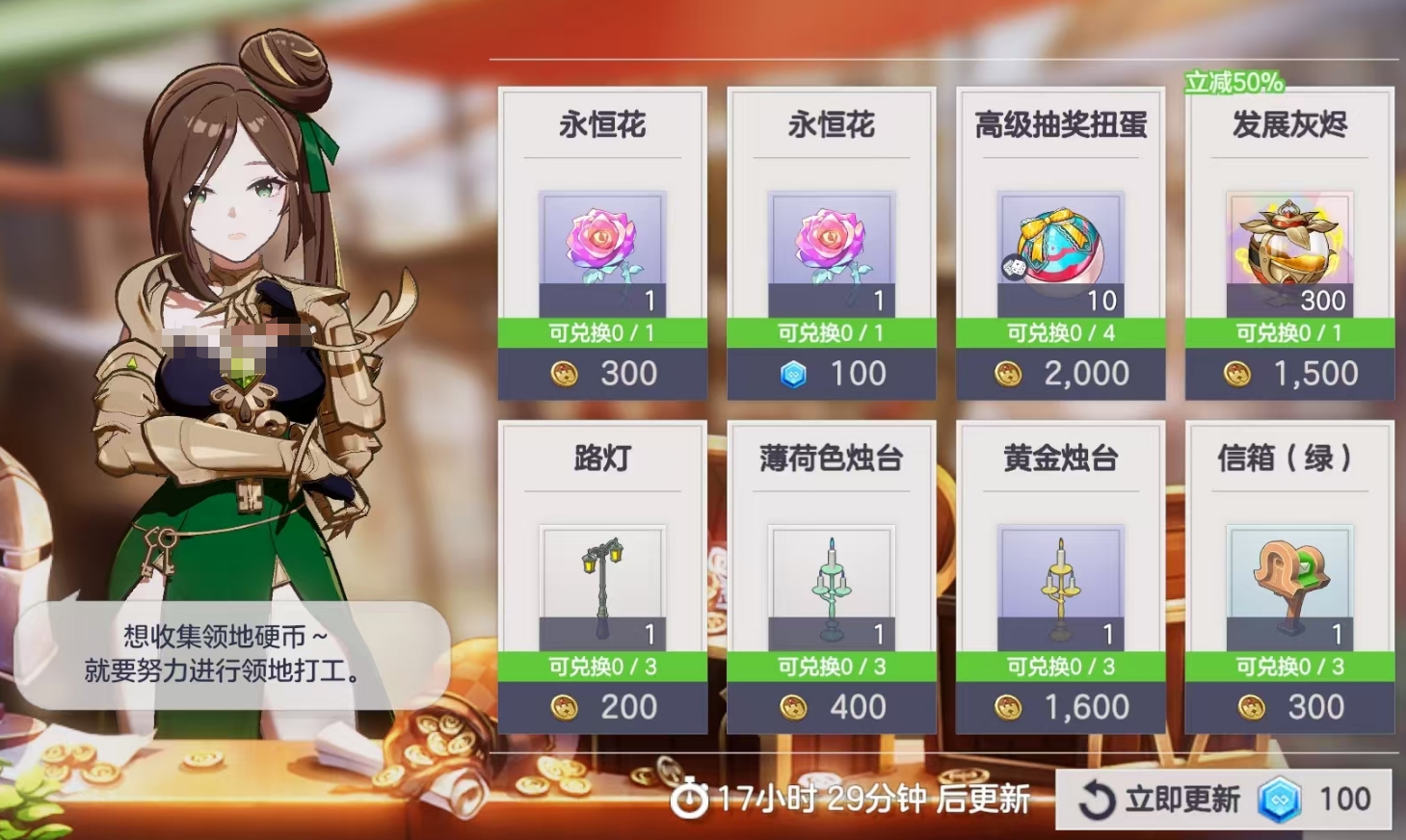 完成猎场清剿与精灵委派均可获得领地硬币,该货币具备双重用途:一是用于领地扩张,二是兑换领地商店内商品,包括永恒花(提升精灵好感)、扭蛋球(抽取好感道具)、发展灰烬(提升领地发展度)以及各类领地建筑图纸等。资源分配建议遵循优先级逻辑:永恒花与扭蛋球为首选,发展灰烬次之,其余建筑类道具在满足前序需求后再行兑换。