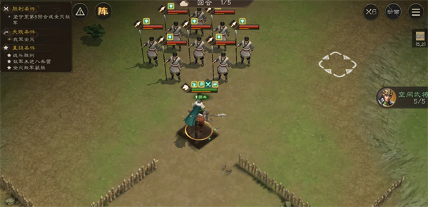 本关要求全灭敌军或者坚守5回合,三星要求敌人未进入兵营且全灭敌军,敌人拥有1000%兵刃减伤buff且无法驱逐,所以这关完全是马超个人秀。